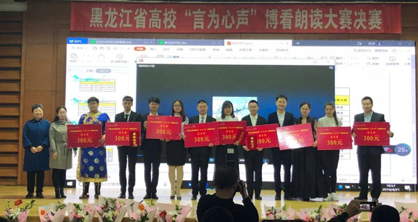 4月21日上午,由哈尔滨工业大学主办、博看数据库承办的“言为心声”博看朗读大赛决赛在哈尔滨工业大学活动中心101举行。广厦学院2018级应用心理学一班的黄飞博同学在面对众多优秀的选手时,不负众望超长发挥并最终取得优异的成绩。