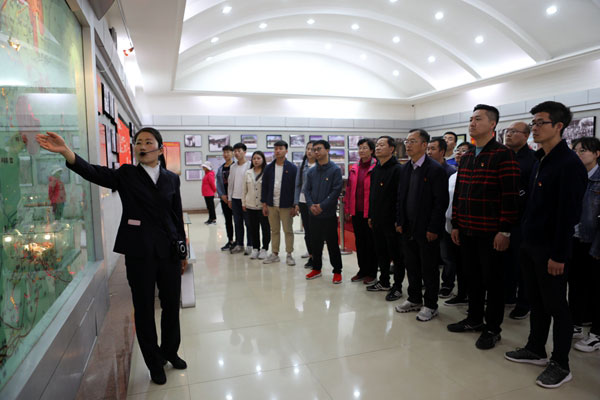 党委书记郭书印、党委副书记王亮与51名党员代表向红军长征将台堡会师纪念碑敬献花篮,向革命先烈三鞠躬,并瞻仰了纪念碑。在红军长征会师纪念碑前,党委委员刘雄飞同志领誓,在场全体党员面向党旗,庄严肃立,重温了入党誓词。活动结束后,参加主题党日活动的党员代表参观了红军长征会师纪念园。在三军会师纪念馆,大家透过一张张珍贵的历史照片和一件件印满岁月痕迹的历史文物,聆听红军动人事迹,感悟红军长征胜利会师的伟大壮举,感受革命先烈为争取自由和解放舍生忘死的崇高情怀,抚今追昔,感慨万千。