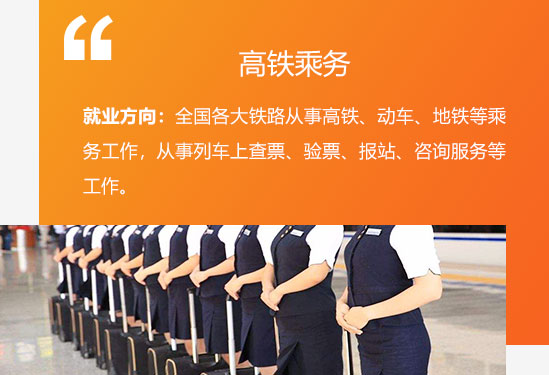 专业设置:空姐/空哥,高铁乘务,地勤服务